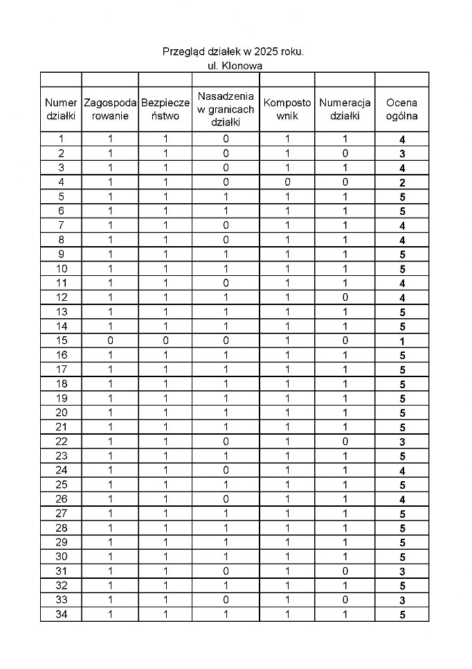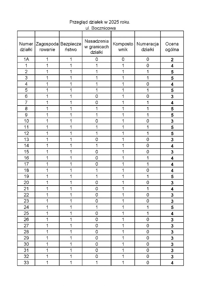 W ocenie Zarządu ROD, zdecydowana większość działkowców użytkuje działkę na ocenę bardzo dobrą lub dobrą, co świadczy o dużym zaangażowaniu w utrzymaniu działek na wysokim poziomie. Działki są zadbane, estetyczne i wypielęgnowane. Nie stwierdzono poważnych uchybień. Najczęstrzym uchybieniem jest brak numerów działki w widocznym miejscu oraz roślinność przerastająca poza granice działki. Tylko dwie działki w naszym ROD otrzymały ocenę niedostateczną.